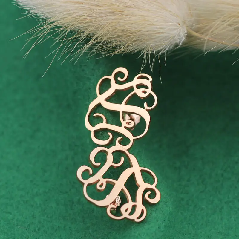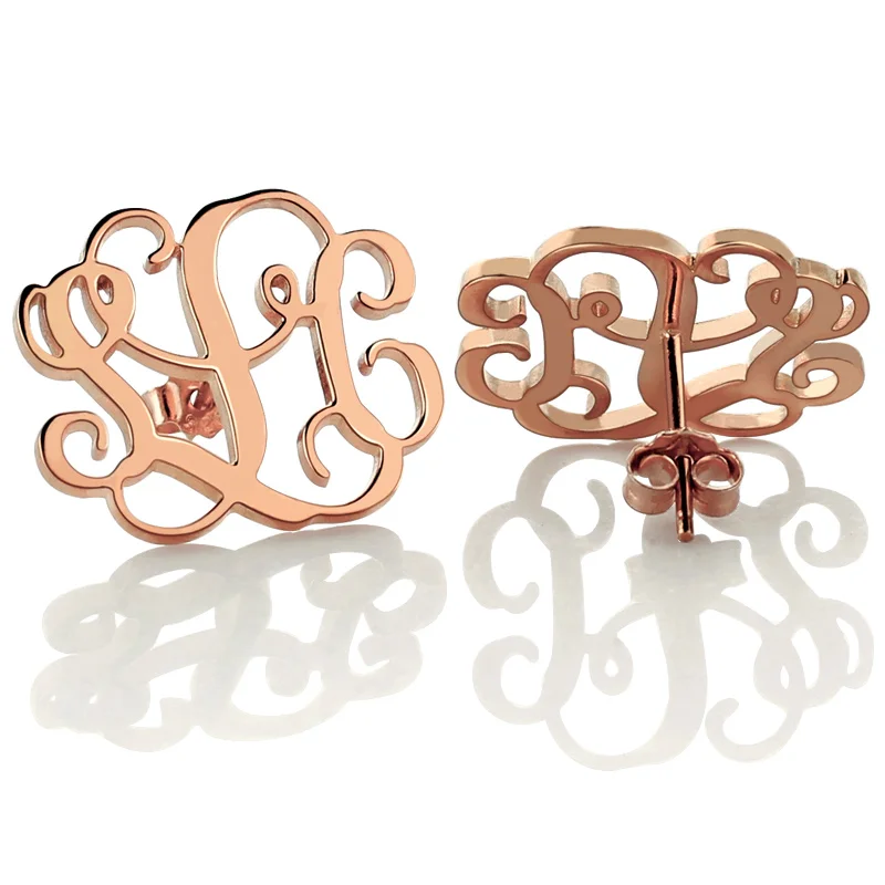 AILIN MO Stud Earrings Rose Gold Color Personalized Monogram Earrings for Women Initial Earrings Mo