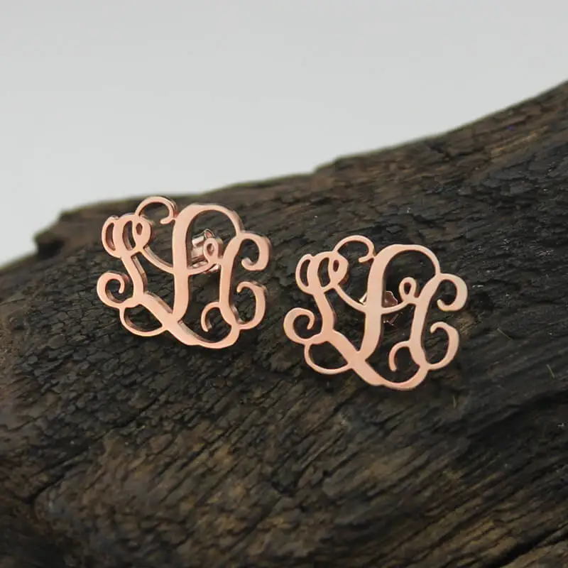 Best AILIN MO Stud Earrings Rose Gold Color Personalized Monogram Earrings for Women Initial Earrings Mo