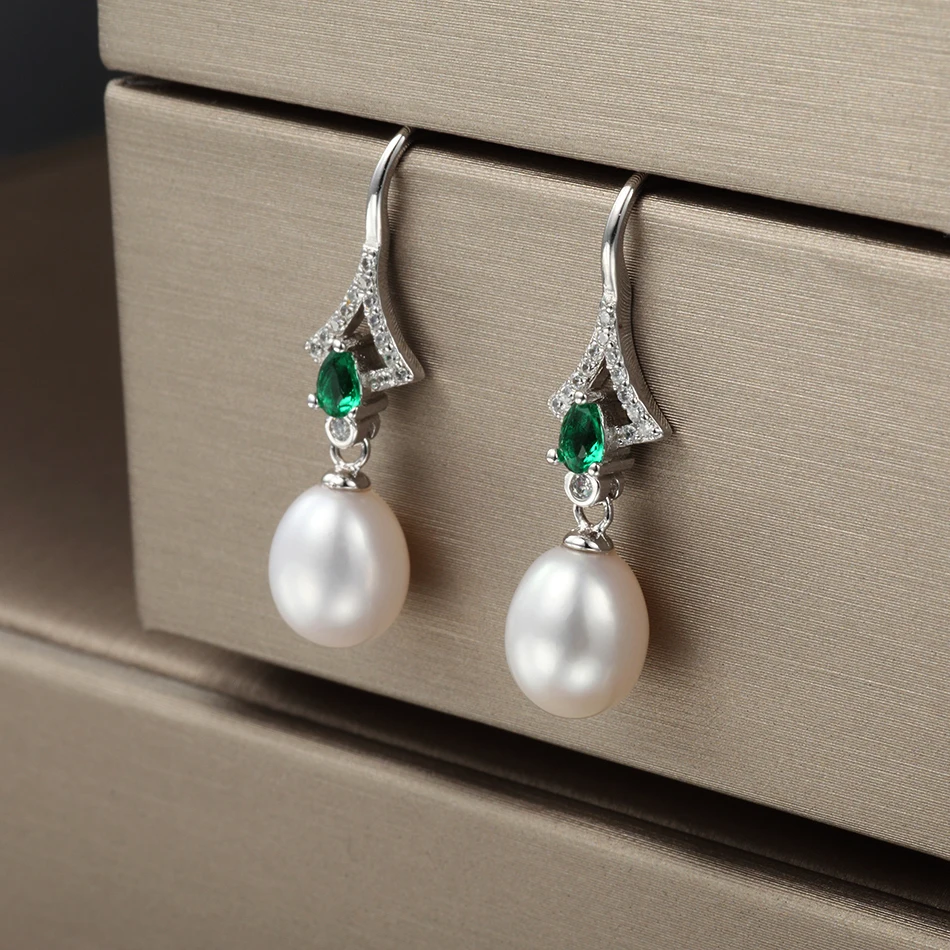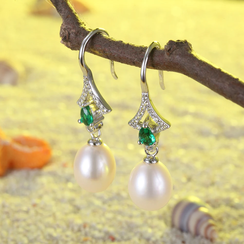 FEIGE Luxury Romantic Anti-allergic Pearl Earrings 8-9MM White Cultured Pearls Drop Earring for Lad