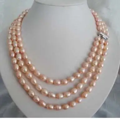 3 row Charming natural 10-12mm south sea pink pearl necklace jewelry Natural Pearl Silver Jewelry