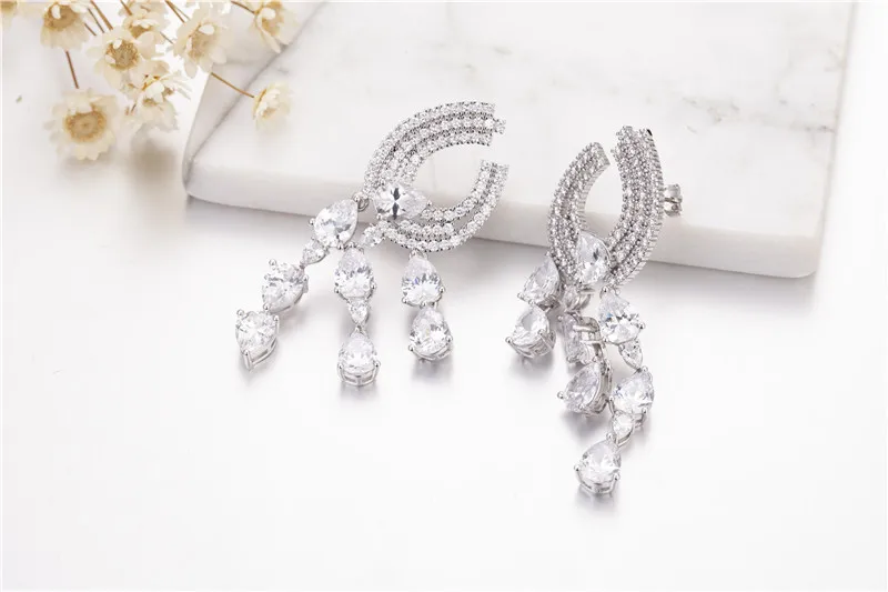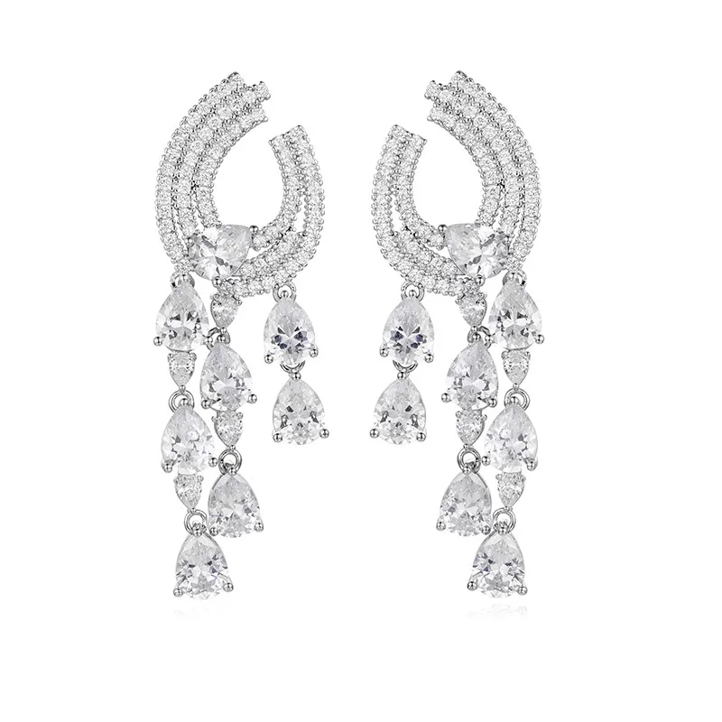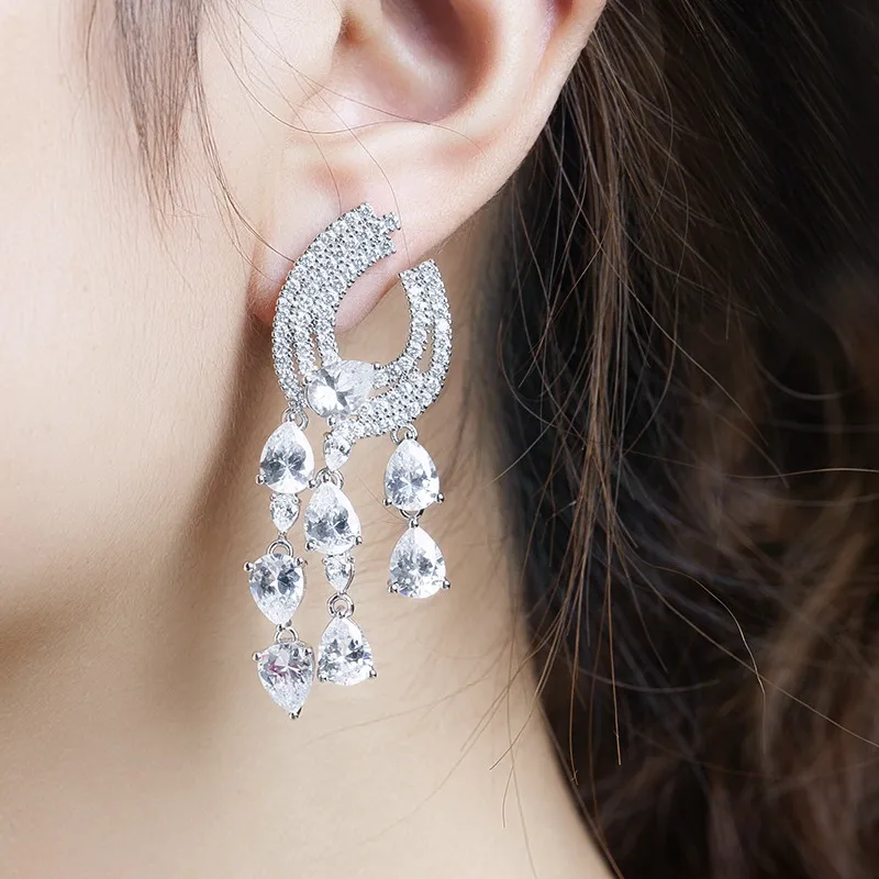 Best Luxury 925 silver Austria 5a cubic zirconia water drop shaped fancy stones long drop earrings for w