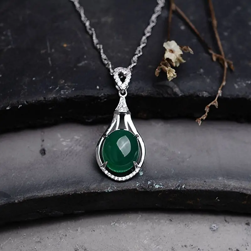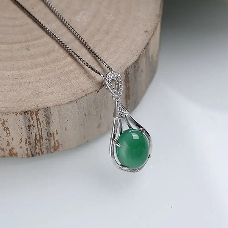 Best Seller high quality green 925 Silver Genuine natural green chalcedony pendant drop necklace jewelry women