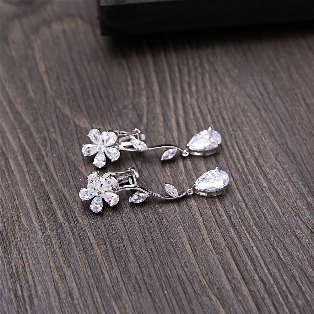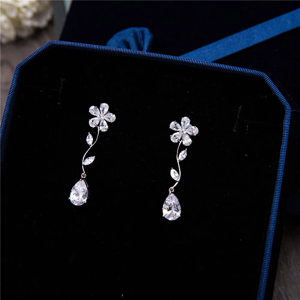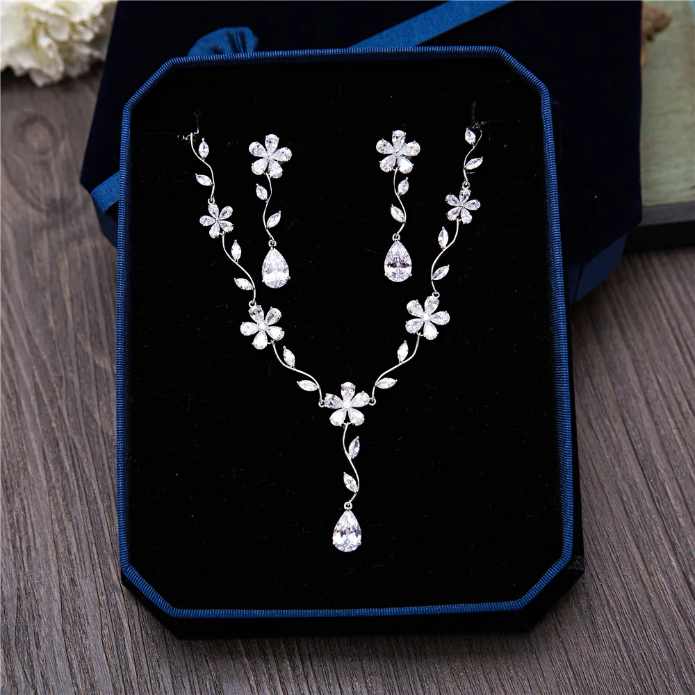 Best New Princess Flower Necklace Earrings Romantic Spring Summer Cubic Zirconia Women Wedding Engagemen