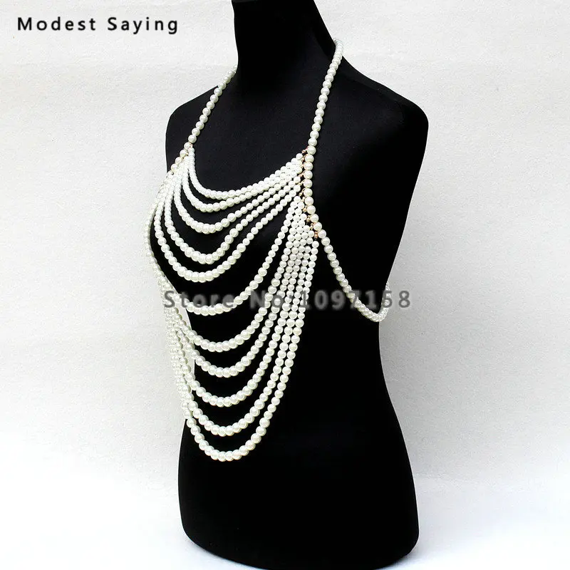 HIGH QUALITY 2019 New Fashion Pearls Tassel Lady Body Chain Sexy Beach Belly Body Chain Wedding Accessories Body