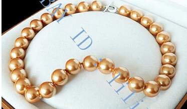 HOT Sale 14mm AAA Champagne South Sea shell Pearl Necklace 18">Lovely Women's Wedding Jewelry Pretty