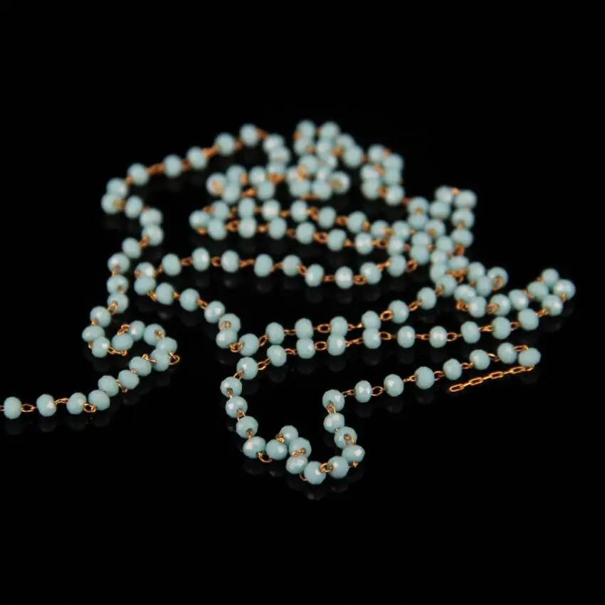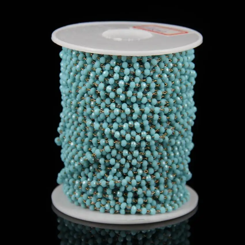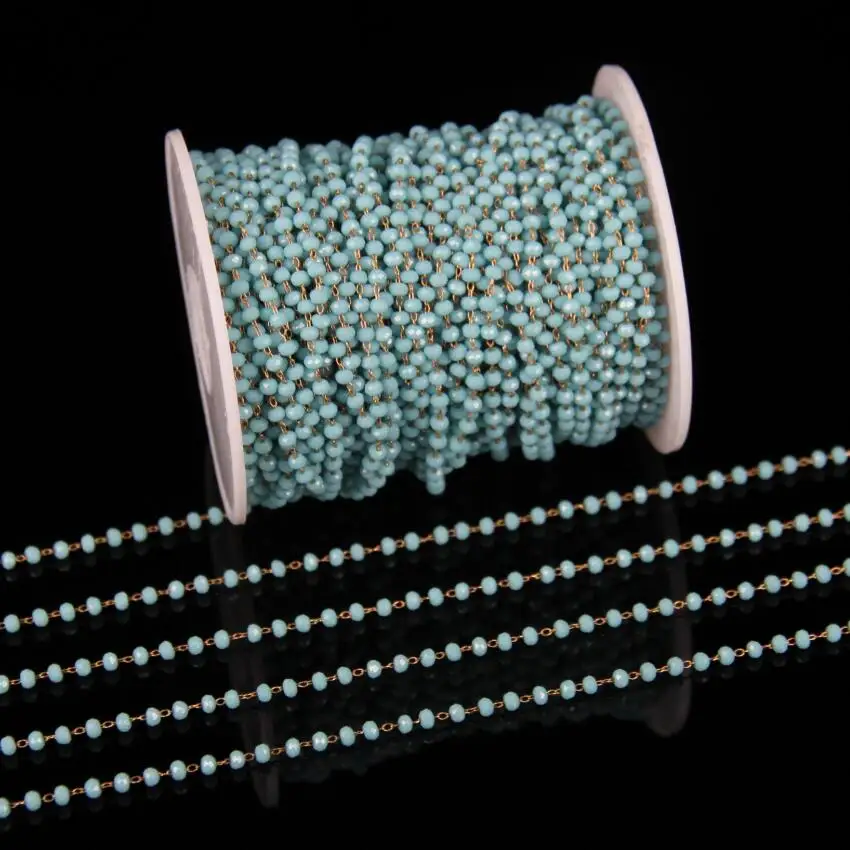 2x3mm Fashion Jewelry Glass ChainsAqua Blue Glass Faceted Rondelle Beads Rosary Chain Plated Brass