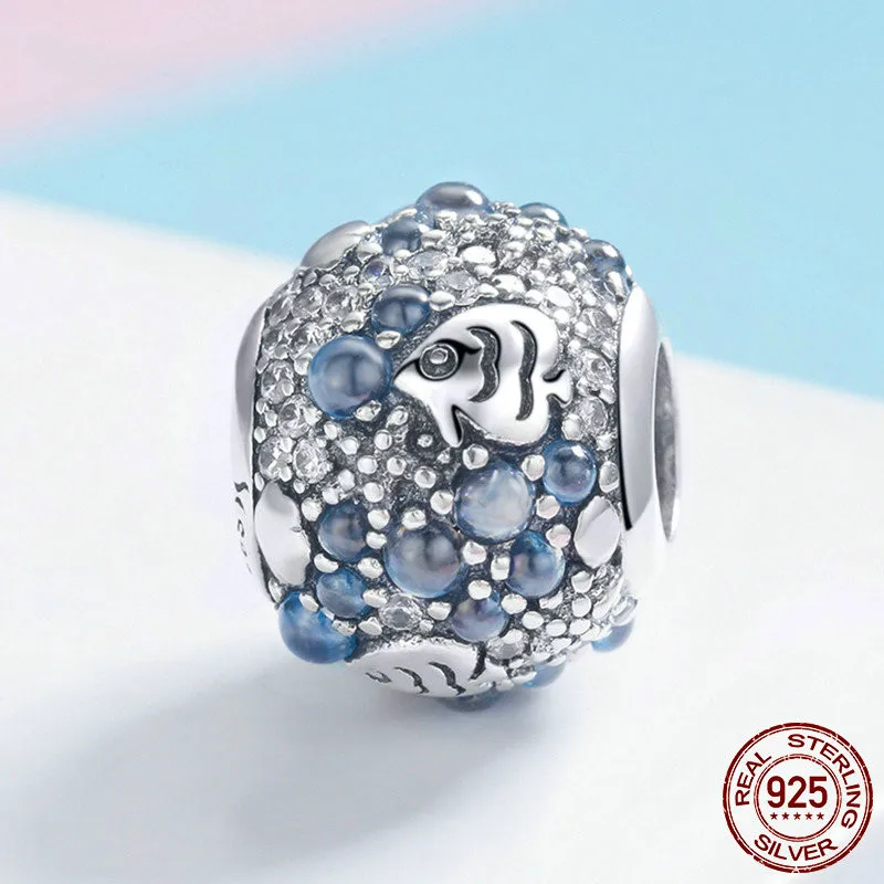 BEST Genuine 925 Sterling Silver Underwater World Fish Ocean Beads Cubic Zircon Charms fit for Beads Bra