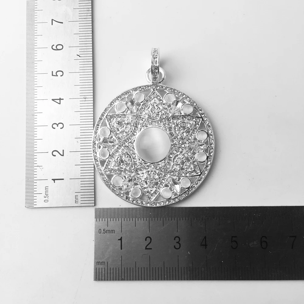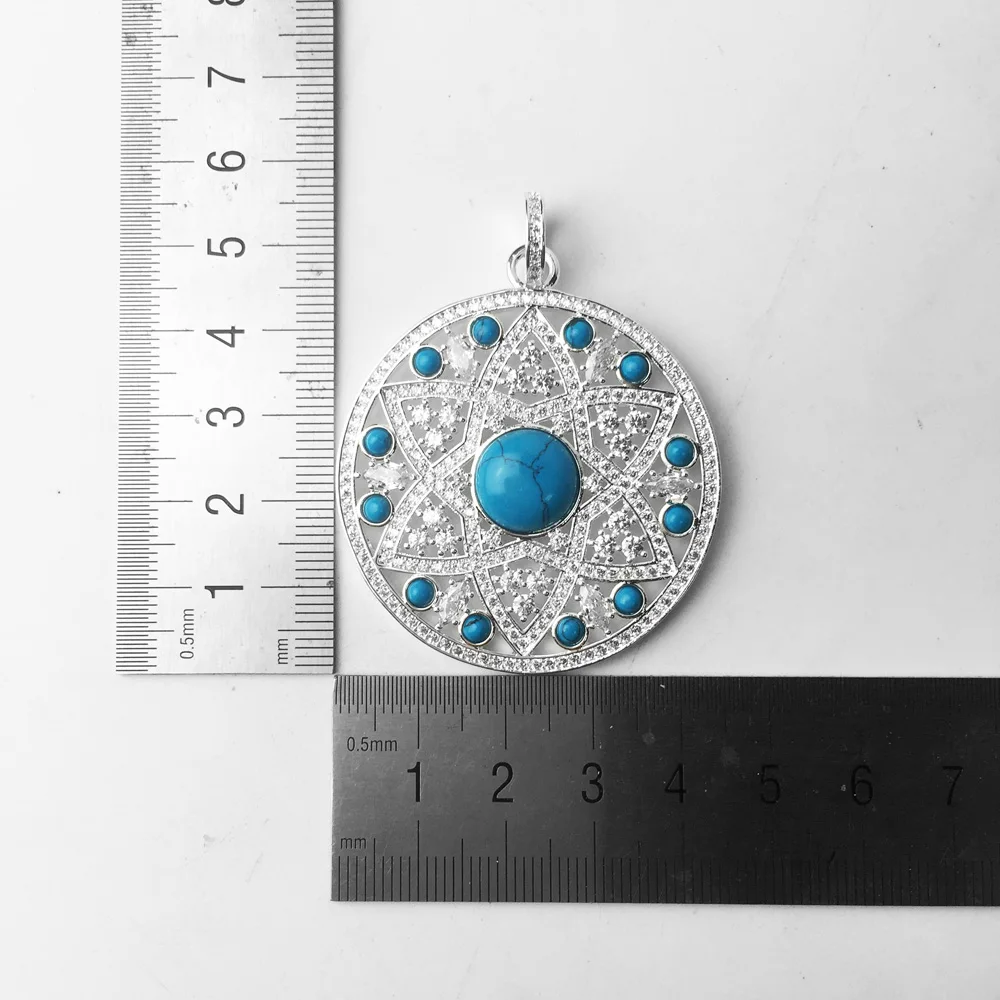 White & Blue CZ Ornament Large Disc Pendants For Women & Girl New Glam 925 Sterling Silver Fashion