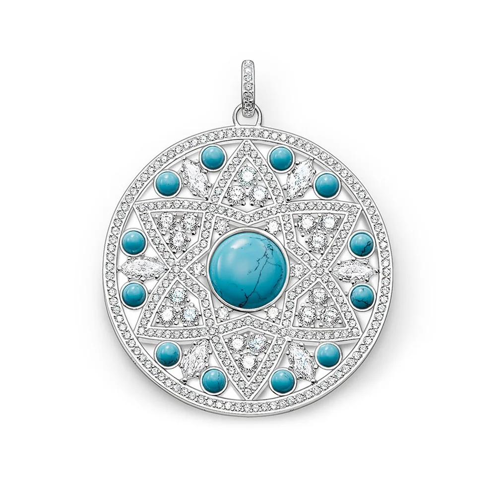 Hot Sale White & Blue CZ Ornament Large Disc Pendants For Women & Girl New Glam 925 Sterling Silver Fashion