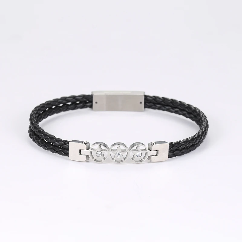 ORIGINAL Dropshipping black charm Bracelets & Bangles Male Gift silver gift leather stainless steel friends