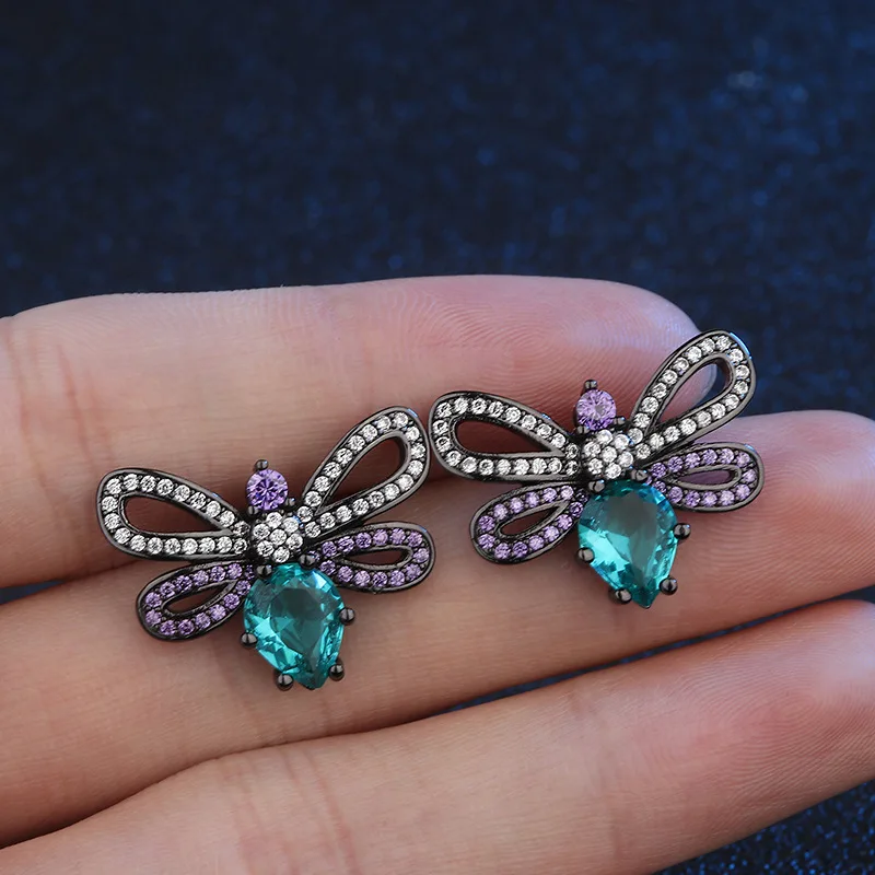 Manufacturers direct sale of Brazil hot match color glass stone earrings creative geometric butterf