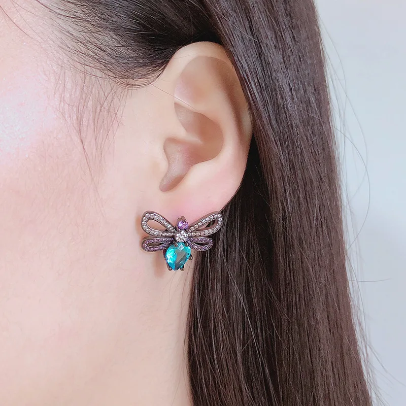 REVIEW TOP SELLER Manufacturers direct sale of Brazil hot match color glass stone earrings creative geometric butterf