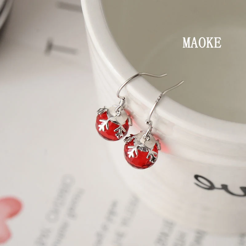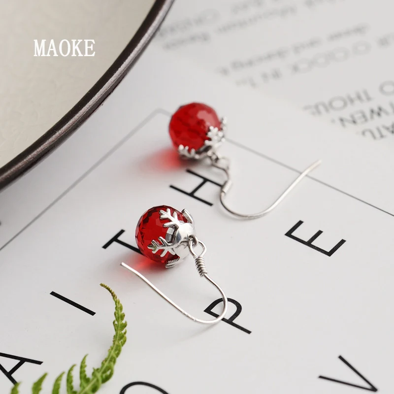 ORIGINAL Promotions Korean Red Earrings Earrings Christmas Snowflake Stud Earrings Silver Jewelry Fashion Je