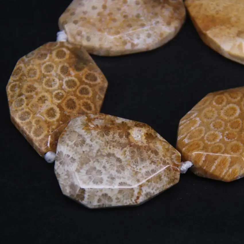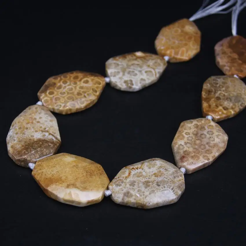 Review 8-9PCS/strand Natural Coral Jades Agates Faceted Slab Nugget BeadsChrysanthemum Stone Jaspers Slice