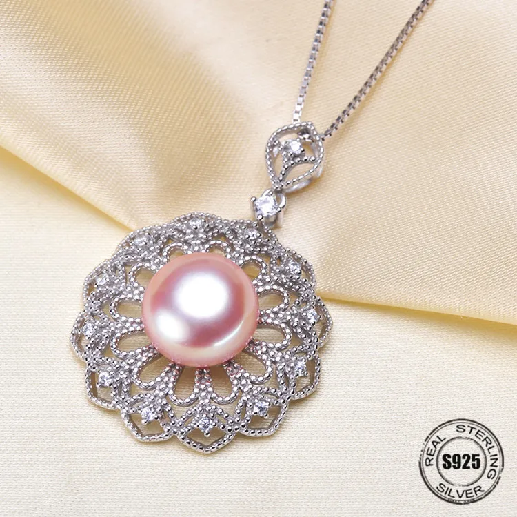 Review Fashion S925 Silver Pearl Necklace Pendant Woman DIY Accessories Semi-finished Parts Fittings Mount