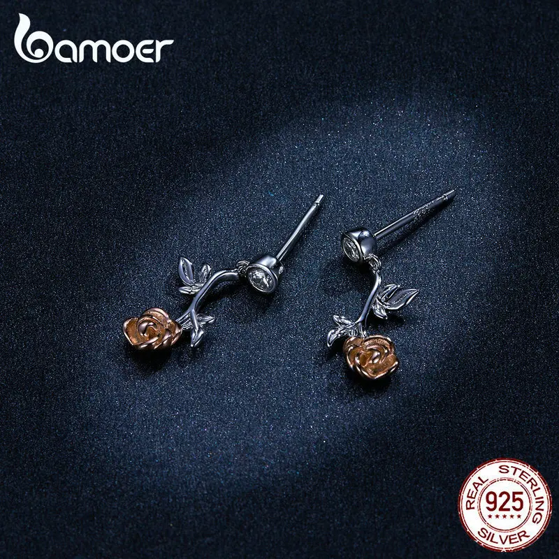 TOP 3D Rose Flower Branch Female Dangle Earrings for Women Authentic 925 Sterling Silver Luxury Jewelry